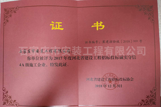 2017年度河北省建設(shè)工程招標(biāo)投標(biāo)誠(chéng)實(shí)守信4A級(jí)施工企業(yè)
